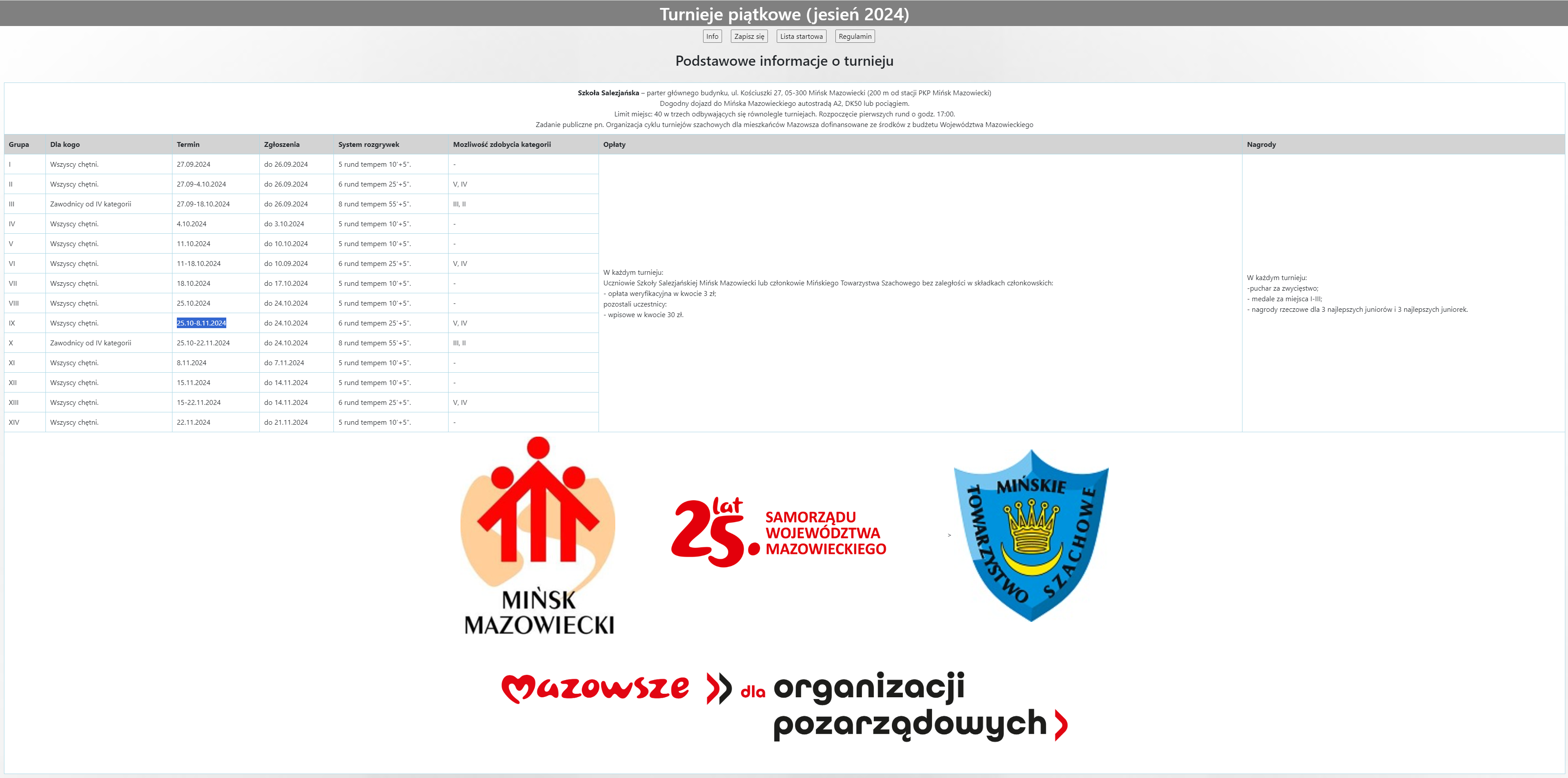 Tu znajdziesz informacje o naszych turniejach szachowych